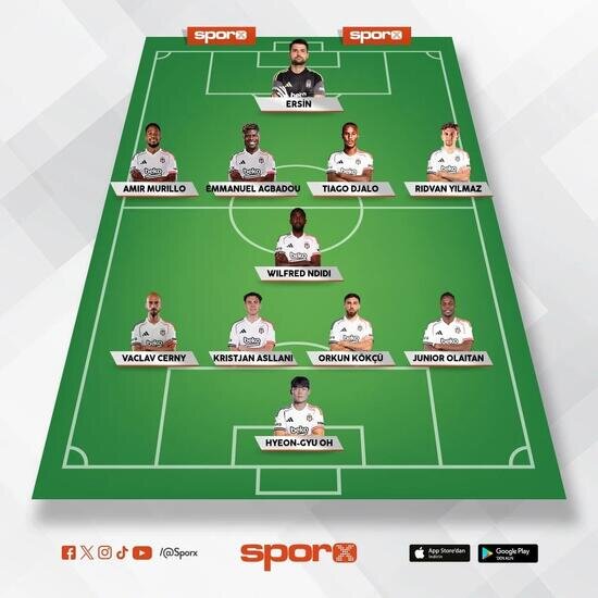 Beşiktaş: Ersin, Murillo, Agbadou, Djalo, Rıdvan Yılmaz, Ndidi, Cerny, Asllani, Orkun, Olaitan, Oh.
