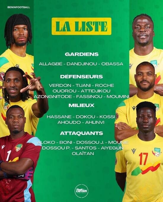 Defans: Olivier Verdon, Mohamed Tijani, Yohan Roche, Tamimou Ouorou, Attidjikou Samadou, Charlemagne Azongnitode, Rodrigue Fassinou, Abdoul Rachid Moumini