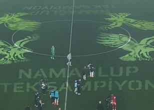 Ayrıca galibiyetinin ardından zemine "Namağlup Tek Şampiyon" yazısı yansıtıldı.