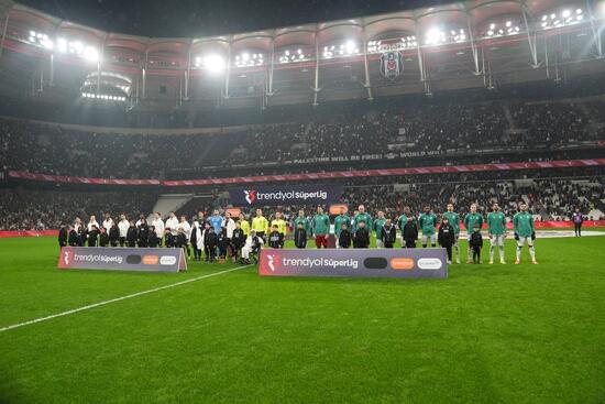 Beşiktaşlı futbolcular, karşılaşmadan önce ısınma bölümüne "6 Şubat: Unutmadık! Önlem al, Hayatta kal" pankartıyla çıktı.