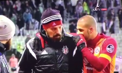 İlk yarının sona ermesinin ardından Galatasaraylı Felipe Melo soyunma odası koridoruna ilerlerken Slaven Bilic'in yanına gelerek bir şeyler söylerken görüldü.
