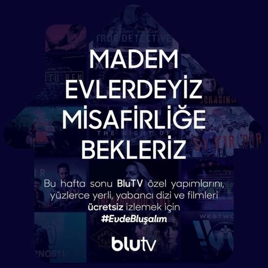 Yasaklar az önce başladı.⏰ Bu hafta sonu her yer kapalı ama BluTV açık! BluTV özel yapımlarını, yüzlerce yerli, yabancı dizi ve filmleri bu hafta sonu ÜCRETSİZ izleyebilmek için #EvdeBluşalım. Detaylar cuma günü sizlerle. 🙌🏻 pic.twitter.com/YijJL2ZnOx
