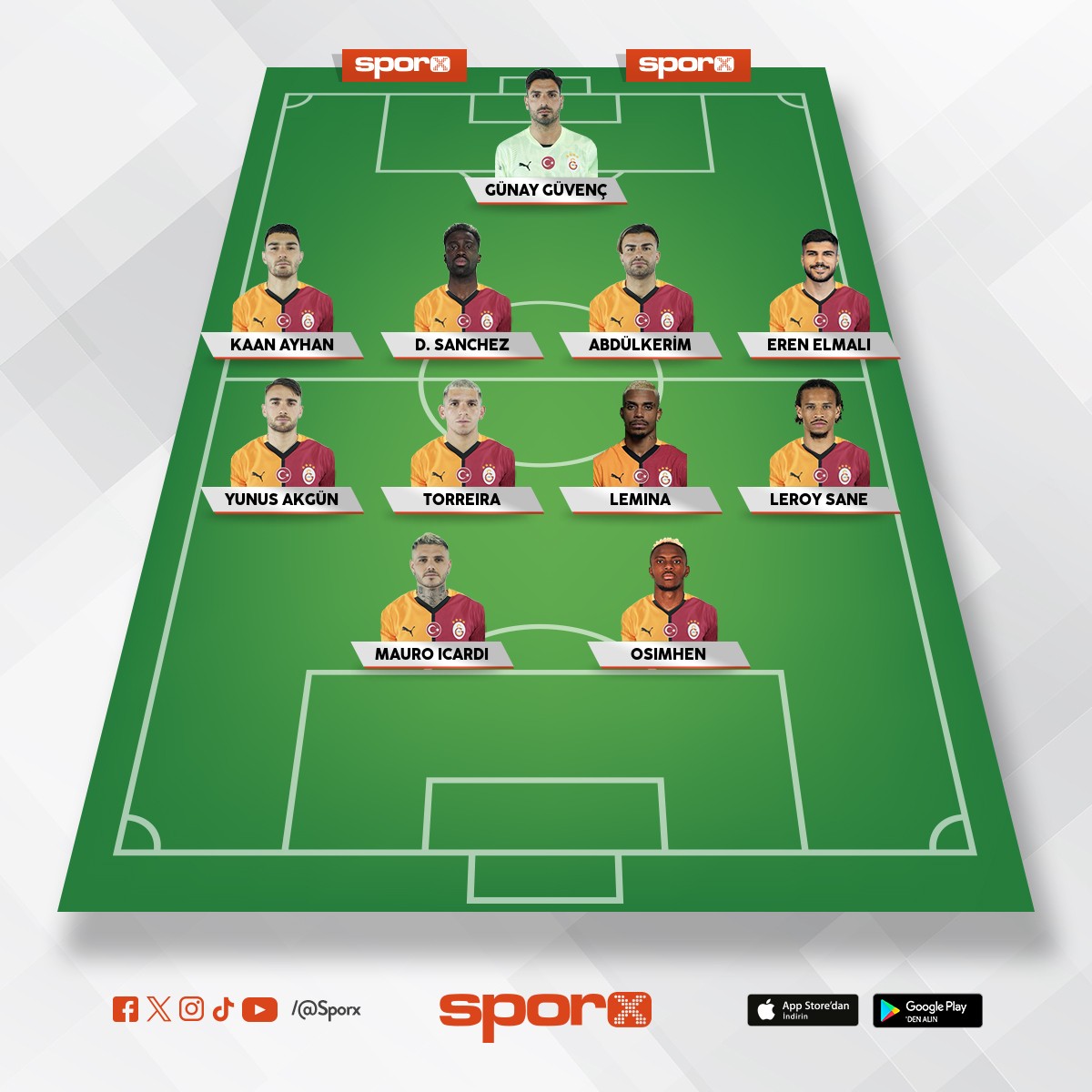 Galatasaray Abdulk,Jacob,Salai,Lemin,İlkay,Yunus,Barış,Icardi.