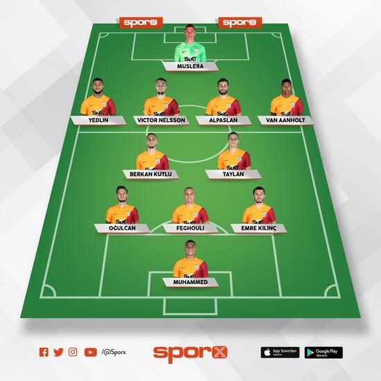 Galatasaray Muslera, Yedlin, Nelsson, Alpaslan, Van Aanholt, Assunçao, Emre Kılınç, Taylan, Oğulcan, Feghouli, Muhammed