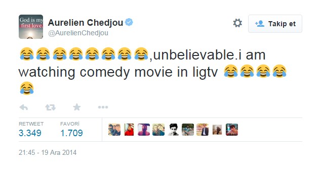 Karşılaşmanın son bölümünde penaltı kazanan ve bu atışı gole çevirerek öne geçen Fenerbahçe'nin penaltı kazandığı pozsiyon sonrasında kişisel Twitter hesabından İngilizce olarak "İnanılmaz, şu an Lig TV'de komedi filmi izliyorum" şeklinde bir tweet attı.