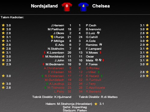 Chelsea, bu sonuçla grupta 1 beraberlik ve 1 galibiyet alarak puanını 4'e çıkardı. Ev sahibi Nordsjalland ise grupta oynadığı iki karşılaşmadan puansız ayrılarak henüz puanla tanışamadı.