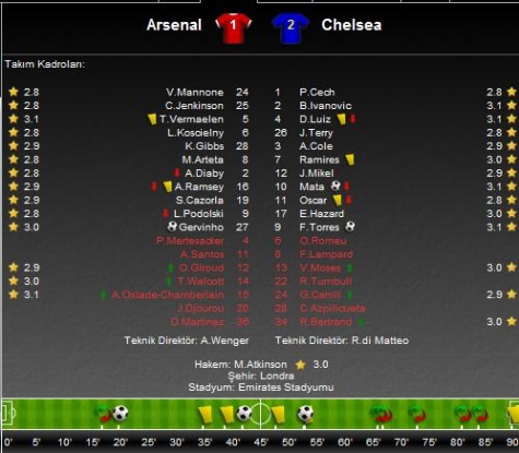 2-1'den sonra oyunu iyice rölantiye alan Chelsea, kalesinde verdiği birkaç pozisyonda da Cech'in başarılı kurtarışlarıyla atlattı ve Londra derbisinden galip ayrılan taraf oldu.