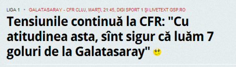 Teknik direktör Ioan Andone için Galatasaray maçının dönüm noktası olduğunu belirten Rumen basını, ligden 'tamamen kopan' Cluj'un çalıştırıcısının tek şansının İstanbul olduğunu yazdı.