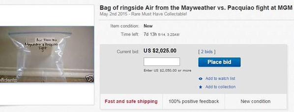 Las Vegas'ta yapılan dövüşte ringin kenarındaki havayı yanında getirip yediği sandviç ambalajına dolduran bir seyirci, bu havayı ünlü bir e-ticaret sitesinde açık artırmaya çıkardı.