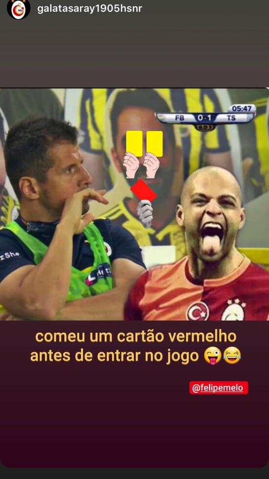 Felipe Melo, Emre Belözoğlu'nun gördüğü kırmızı kart sonrası instagram hesabından, "Daha maça bile girmeden kırmızı kart gördü." paylaşımını yaptı. Oyuncu Ceyhun Fersoy ise bu paylaşıma, "Sen büyük o.... ç......" yorumunu yaptı.