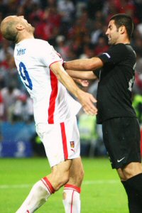 Volkan Demirel, EURO 2008'de Çek Cumhuriyeti maçının son anlarında Koller'in tahrikine kapılmış ve rakibine sportmenlik dışı biryine oyundan atılmıştı. Volkan atılınca son anlarda kaleye Tuncay Şanlı geçmiş, milli takım elenmekten şans eseri kurtulmuştu.