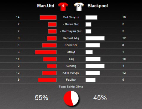 İngiltere Premier Ligi'nde sezonun son haftası olan 38. hafta mücadelesinde sezonu şampiyon tamamlayan Manchester United sahasında Blackpool'u 4-2'lik skorla mağlup etti.