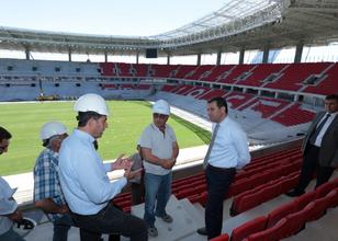 Eskişehir Valisi Azmi Çelik, 35 bin seyirci kapasiteli Eskişehirspor'un yeni stadının inşaatında incelemelerde bulundu.
