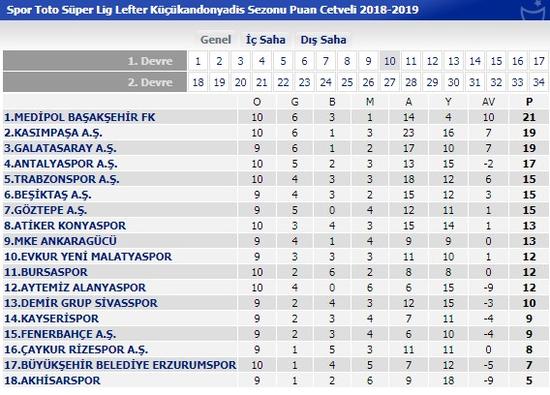 - Puan durumu Ligde 9. hafta müsabakalarının ardından oluşan puan durumu şöyle: