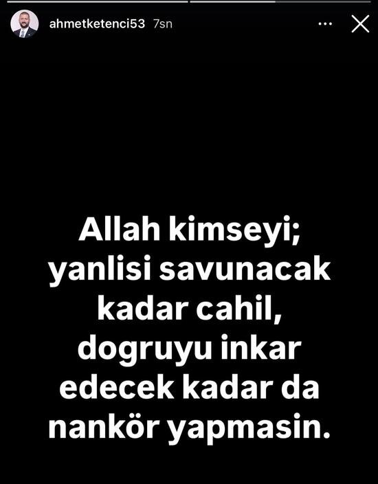 Fenerbahçe Yönetim Kurulu Üyesi Ahmet Ketenci'nin paylaşımı: "Allah kimseyi; yanlışı savunacak kadar cahil, doğruyu inkar edecek kadar da nankör yapmasın."