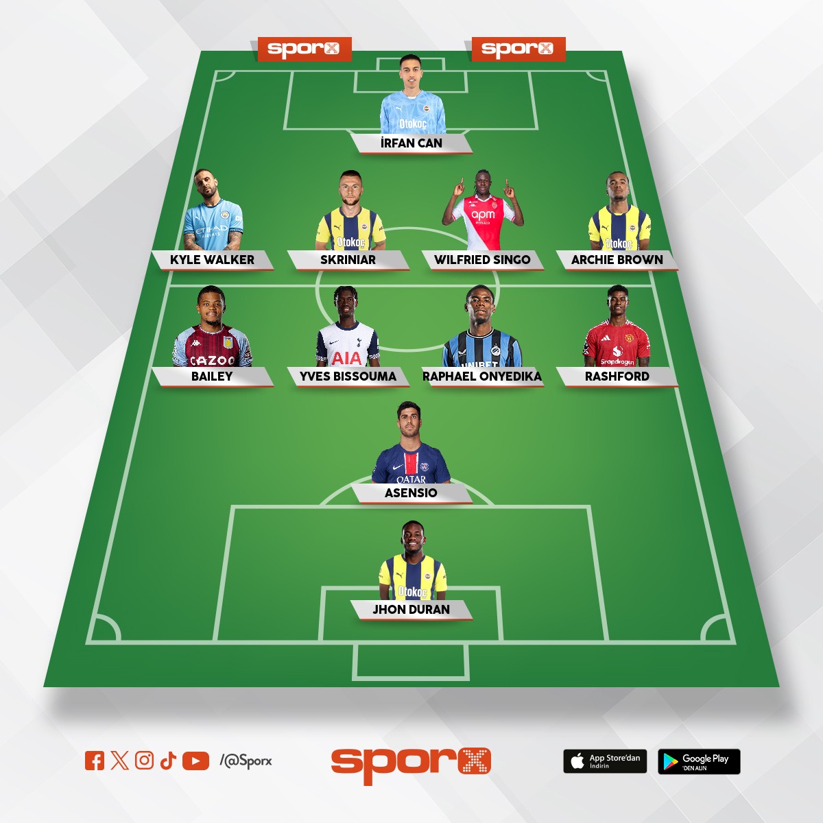 Fenerbahçe Kerem,Nene,Talisca,Duran,Oster,İsmail,Mert,Yiğit,İrfan,