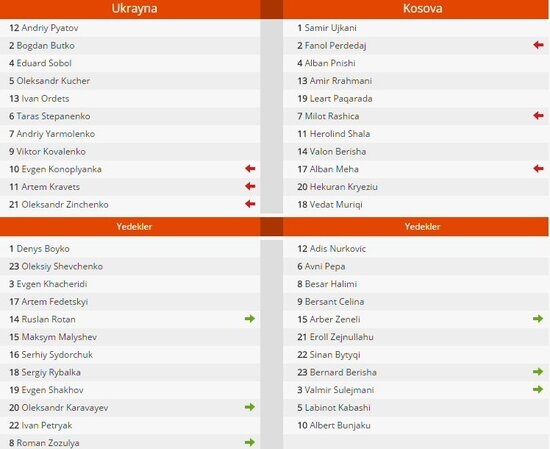 2018 Dünya Kupası Elemeleri'nde A Milli Takımımızın yer aldığı I Grubu'nda Ukrayna, Kosova'yı 3-0'lık skorla mağlup etti.