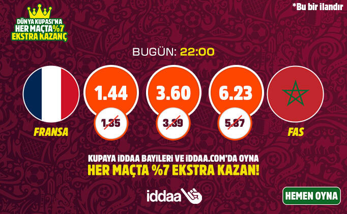 2022 Dünya Kupası'nda çarşamba günü Fransa ile Fas arasında Al Bayt Stadı'nda oynanacak yarı final mücadelesi, saat 22.00'de başlayacak