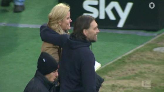 Tecrübeli teknik adam, maçın bitiş düdüğünün ardından saha kenarında duran kulübün basın sözcüsü Silke Bannick'e arkadan yaklaştı ve kalçasına dokundu.