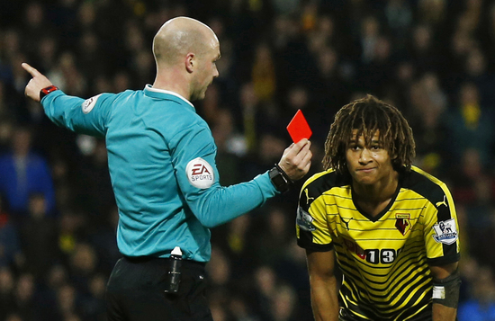 Ev sahibi Watford'dan Nathan Ake maçın 63. dakikasında kırmızı kart görerek oyun dışı kaldı.