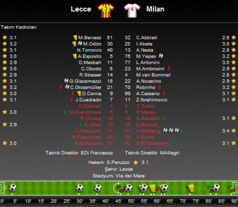 Bu sonucun ardından Milan puanını 11'e yükseltirken; Lecce ise 4 puanda kaldı.