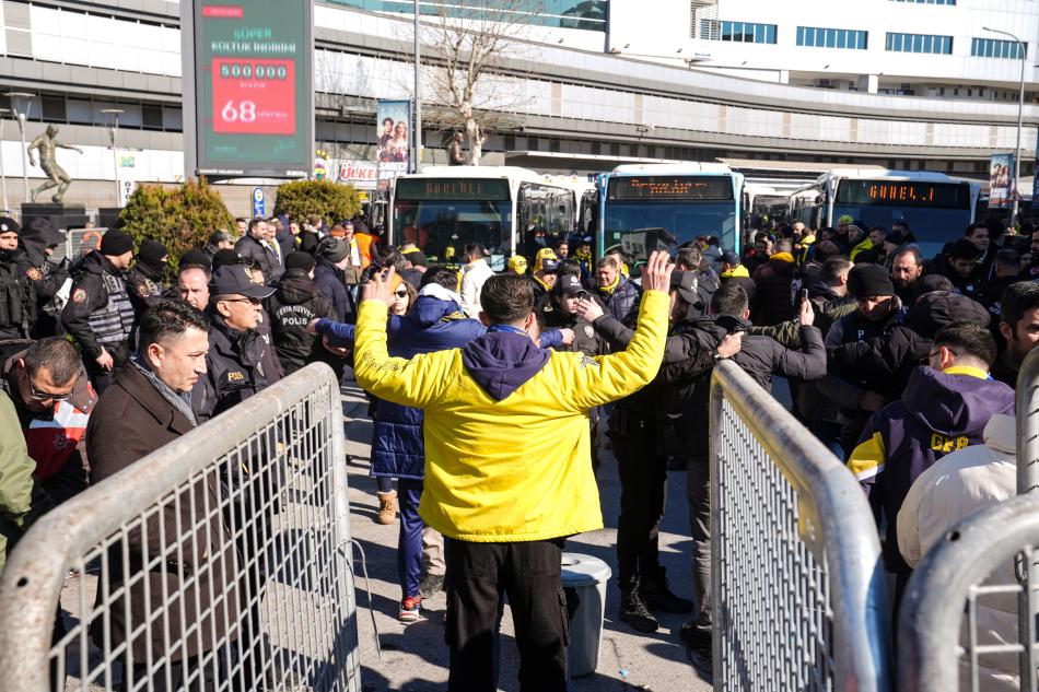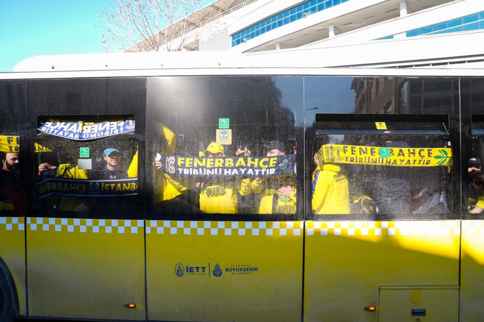 Ülker Stadı'nın önünde toplanan Fenerbahçeli taraftarlar, güvenlik aramasının ardından İETT'ye ait otobüslere bindirildi.