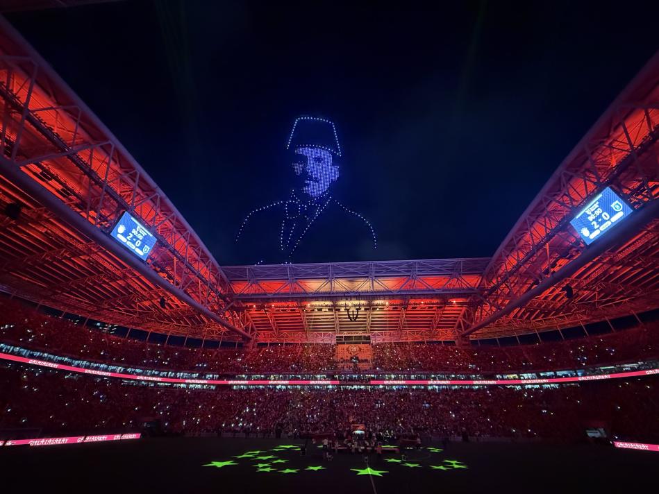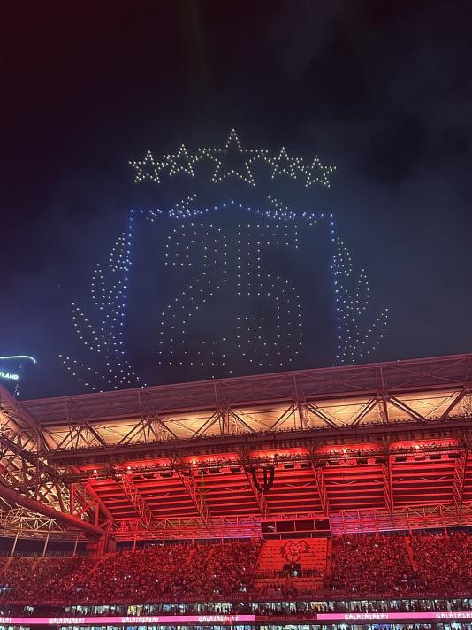25. şampiyonluğa ulaşan ve 5. yıldızı takan Galatasaray'da, sezonun son haftasında oynanan Başakşehir maçı sonrası RAMS Park Stadyumu'nda drone gösterisi yapıldı. Gösterilerde, Galatasaray'a veda eden Fernando Muslera ile Dries Mertens, kiralık sözleşmesi biten Victor Osimhen, teknik direktör Okan Buruk'un silüetleri de yer aldı. İşte o görüntüler....