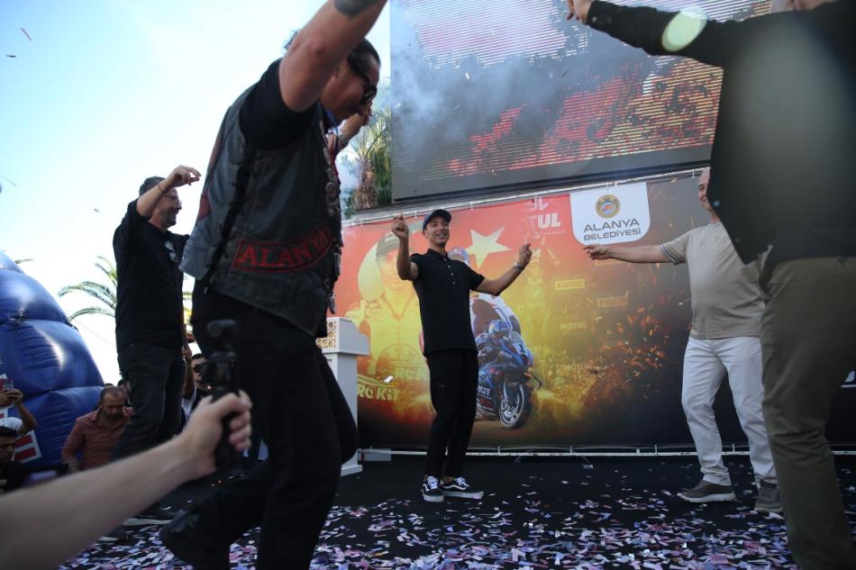 Alanyaspor Kulübü Başkanı Hasan Çavuşoğlu ise üçüncü kez dünya şampiyonu olan Toprak Razgatlıoğlu'na kupa ve madalyayı Alanya'ya kazandırdığı için teşekkür etti.