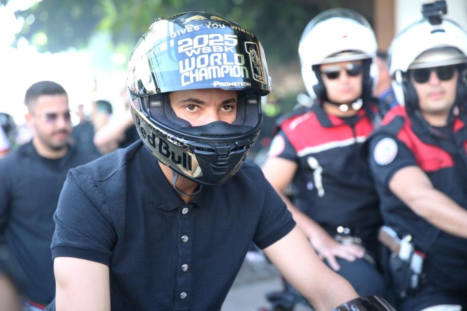 Dünya Superbike Şampiyonası'nda (WSBK) 3. kez şampiyonluğa ulaşan milli motosikletçi Toprak Razgatlıoğlu, memleketi Antalya'nın Alanya ilçesinde coşkuyla karşılandı.