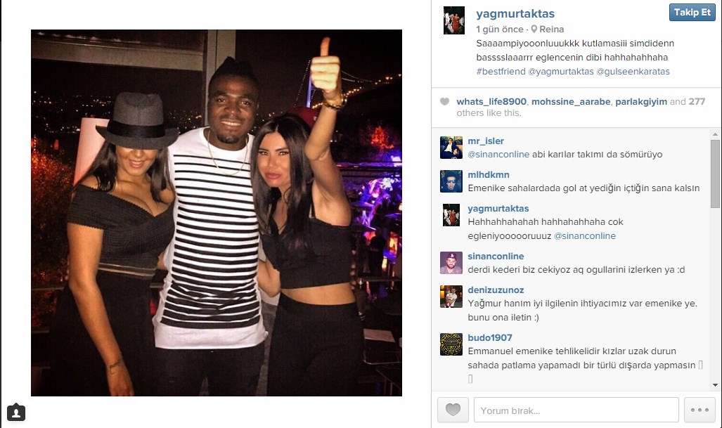 Yağmur Taktaş, instagram hesabında Emenike ile çekilmiş fotoğrafın altına "Şampiyonluk kutlamalarına şimdiden başlar.." yazarak takipçileriyle paylaştı...