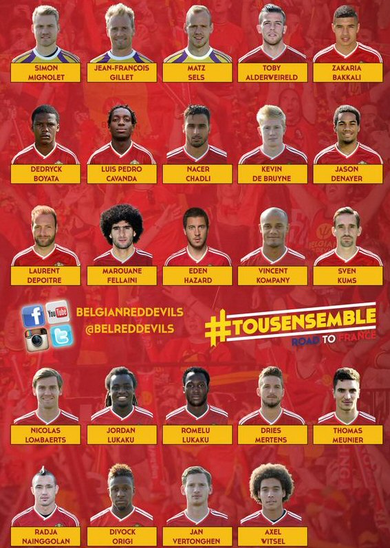 2016 Avrupa Şampiyonası Elemeleri B Grubu'nda yer alan Belçika Milli takımı'nın aday kadrosu belli oldu.