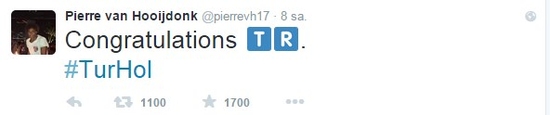 Hooijdonk, maçın bitimine dakikalar kalan mikro blog sitesi twitter üzerinden “Tebrikler Türkiye” mesajını yayınladı.