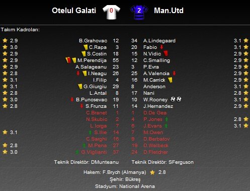 Bu sonucun ardından Manchester United gruptaki puanını 5'e çıkartırken 2. sıraya yerleşti. Etelul Galati ise Şampiyonlar Ligi'ndeki 3. maçından da mağlubiyetle ayrılarak son sırada yer aldı.