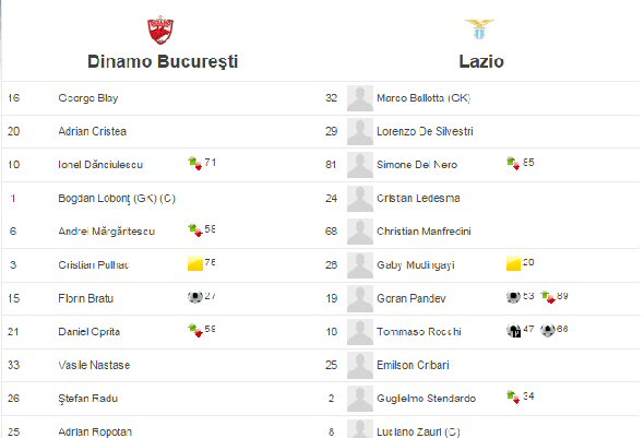 Karşılaşmanın sonrasında Lazio, Dinamo Bükreş'in 20 yaşındaki savunma oyuncusu Radu Stefan'ı 5,4 milyon avro bonservis bedeli karşısında kadrosuna katmıştı.