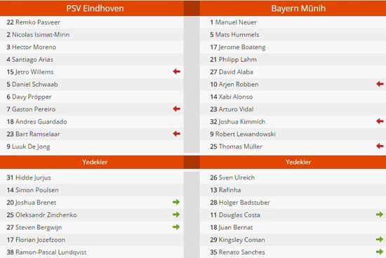 PSV Eindhoven, karşılaşmanın 14. dakikasında Santiago Arias'ın golüyle 1-0 öne geçti. Bayern Münih, 34 (penaltı) ve 73. dakikada Robert Lewandowski'nin golleriyle PSV Eindhoven'ı 2-1 mağlup etti.