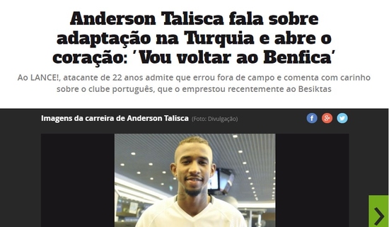 SPORX DIŞ HABERLER - Beşiktaş'ın satın alma opsiyonlu olarak Benfica'dan kadrosuna kattığı Anderson Talisca, Brezilya basınına açıklamalarda bulundu.