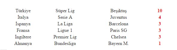 Avrupa’nın 5 büyük ligi (İspanya, İngiltere, Almanya, İtalya ve Fransa) ve Süper Lig’i göz önüne aldığımızda en çok kırmızı kart gören takım Beşiktaş oldu.