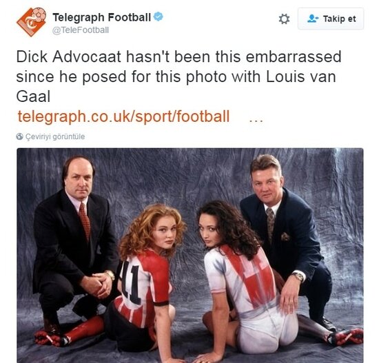 Telegraph, Dick Advocaat'ın Louis van Gaal ile Hollanda'da rakip olduğu günlerde çektirdiği bir fotoğrafı paylaşarak; "Dick Advocaat, Louis van Gaal ile çektirdiği fotoğraftan bu yana bu kadar utanılacak duruma düşmemişti" ifadelerini kullandı.