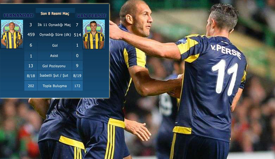 Ekim 2015’ten bu yana Süper Lig’de beş, UEFA Avrupa Ligi’nde üç maça çıkan Van Persie toplam 19 şut çekti, 8 isabet sağladı ve sadece bir gol atabildi. Van Persie toplam 514 dakika sahada kalırken bu maçların 7 tanesinde ilk 11’de başladı ve sadece bir tanesinde 90 dakika sahada kaldı.