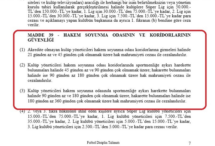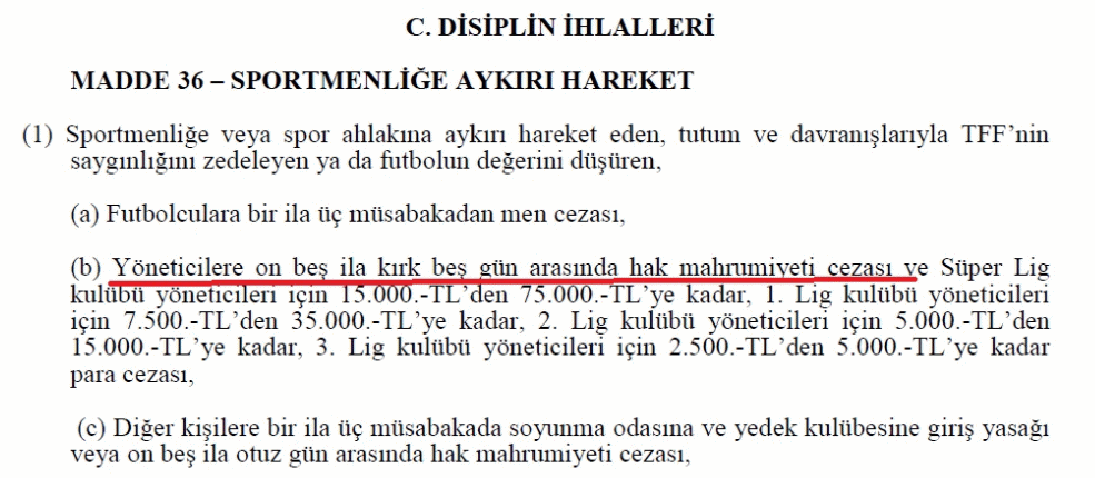 Sözlerinde iddia edildiği gibi tehdit ve hakaret kapsamına girecek ifadeler yer almayan Yıldırım'ın PFDK tarafından muhtemelen disiplin talimatının 36. Maddesi kapsamında cezalandırılacağı öğrenildi. Yıldırım'ın hakem Tolga Özkalfa'ya bu sözleri çıkış tünelinde söylediği bu nedenle minimum 45 gün hak mahrumiyeti cezası gerektiren hakem soyunma odası koridoruyla ilgili 39. Madde kapsamında cezalandırılamayacağı iddia edildi.
