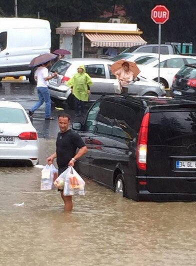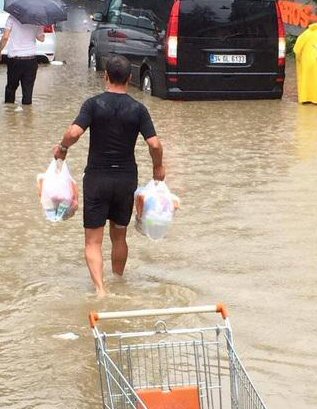 Açıklamalarına devam eden "Eşim marketin otoparkında mahsur kaldı. ben de gittim onu aldım. Evde üç oğlum var, sürekli yemek yiyorlar ve evde sürekli bir şeyler bulundurmak zorundayız. Eşim devamlı markete gidiyor. Onu sırtıma alarak karşıma geçirmek istedim ancak eşim bunu kabul etmedi. Normalde ben arabada bekliyorum, eşim alışveriş yapıp geliyor. Bu kez durum farklı oldu. Orada balık gibi yüzmek zorunda kaldım" diye konuştu.