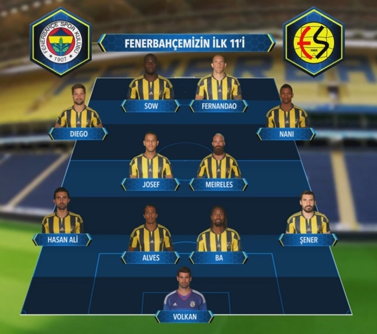 Caner Erkin'in cezalı olduğu sarı-lacivertlilerde defansın solunda Hasan Ali Kaldırım şans bulurken; sakatlığı bulunan Gökhan Gönül'ün yerine ise Şener Özbayraklı 11'de yer aldı.