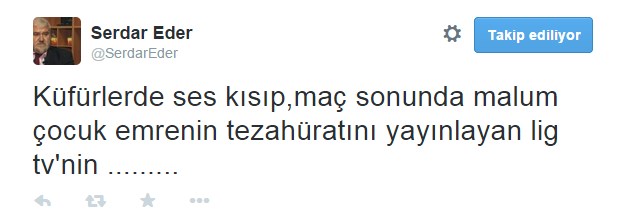 G.Saray Spor Kulübü Sicil Kurulu Başkanı Serdar Eder, karşılaşmanın sonunda Emre Belözoğlu'nun taraftarlara yaptırdığı tezahüratın yayınlanmasına sinirlendi ve "Küfürlerde ses kısıp, maç sonunda malum çocuk emrenin tezahüratını yayınlayan lig tv'nin...." şeklinde bir mesaj paylaştı.