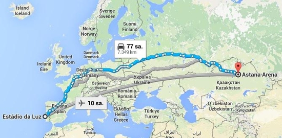 Astana deplasmanı için Benfica yaklaşık 6200 kilometrelik, Atletico Madrid yaklaşık 5700 kilometrelik, Galatasaray ise 3500 kilometrelik bir yolculuğa katlanmak zorunda kalacak…