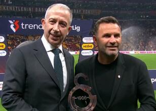 Galatasaray, Antalyaspor maçı öncesi Okan Buruk'a bu başarısından dolayı plaket takdim etti.