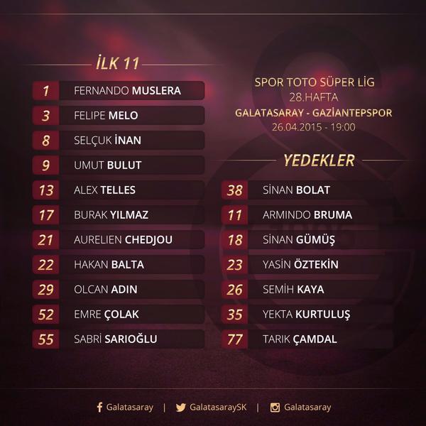 Özellikle Türk Telekom Arena'da seyircileri ayağa kaldıran ve Wesley Sneijder ile olan uyumu dikkatlerden kaçmayan Yasin Öztekin, Gaziantepspor karşılaşmasında kulübenin yolunu tuttu. Trabzonspor maçında ilk devrede sahada kalan fakat ismi duyulmayan 28 yaşındaki oyuncu da formasını Olcan Adın'a kaptırdı.