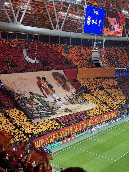 Sarı-kırmızılı taraftarlar, Liverpool karşılaşmasında, 3 yaşındayken annesini kaybeden Osimhen için 'Biz bir aileyiz' adı altında özel koreografi hazırladı.