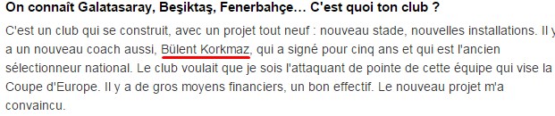 Başakşehir'i tanıtması istenen Fransız oyuncunun, "Yeni bir proje, yeni bir stat, yeni tesisler var. Ayrıca hocamız da 'Bülent Korkmaz', 5 yıllık yeni bir sözleşme imzaladı ve eski Milli Takım hocası" sözlerine yer verildi.
