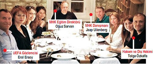 Hakem dostlarımla bu yeni liste ile ilgili konuştum. Hepsinin ortak görüşü, 2 sene önce listeden çıkarılan Özkalfa'nın yeniden bu listeye alınmasının hata olduğu yönündeydi. Konuyu biraz daha derinlenmesine araştırdığımda MHK Eğitim Direktörü Oğuz Sarvan, UEFA Hakem Komitesi Üyesi ve MHK Danışmanı Jaap Uilenberg, UEFA Gözlemcisi Erol Ersoy ve Tolga Özkalfa'nın bir arada bulundukları bu fotoğrafa ulaştım. İnsanların bir araya gelip yemek yemesi çok güzel... Bu durumda rahatsız olunacak hiç bir durum yok.