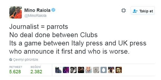 İtalyan ve İngiliz medyasında çıkan haberler için eleştiride bulunan Raiola, "Gazeteciler=Papağan" şeklinde mesaj yayınladı.
